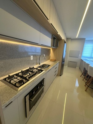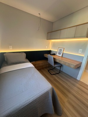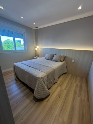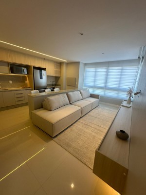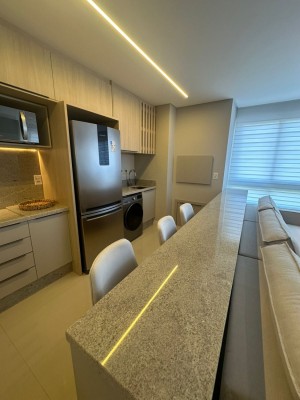 Com 02 dormitórios, sendo 01 suíte, este apartamento conta com box de garagem, churrasqueira, piso laminado e porcelanato, gesso no teto, salão de festas, academia e 02 elevadores para sua conveniência. Além disso, o imóvel é novo, mobiliado e decorado, pronto para morar.